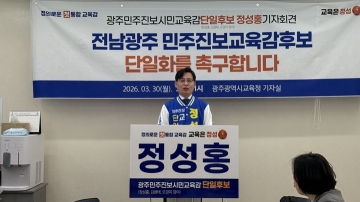 정성홍 전남광주통합특별시 교육감 예비후보가 30일 기자회견을 열고 전남광주 민주진보교육감 후보 단일화를 공식 제안했다.